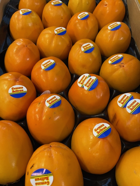 Spanish Kaki Persimon ® (this is the trademarked name for the PDO-certified Persimmon grown in the Ribera del Xúquer valley in Valencia, Spain) Although they can be eaten still firm they are at their very best when soft and the flesh is almost jelly like. The taste is quite complex with flavours of mango, melon, cinnamon and dates.