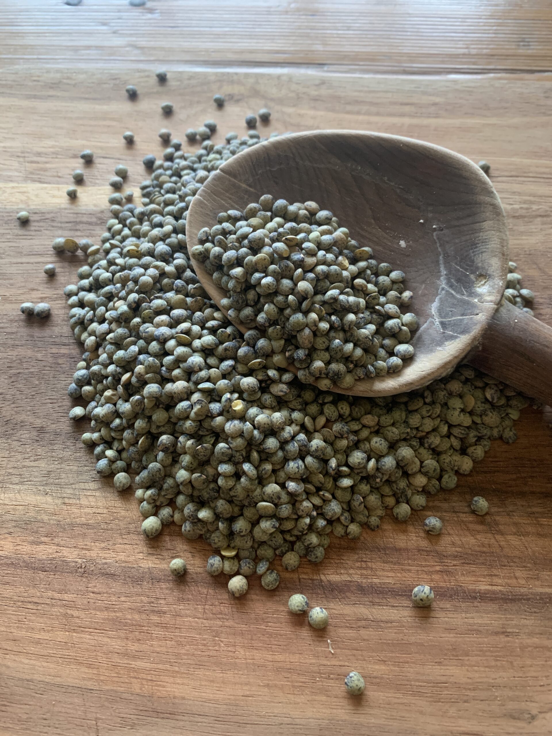 These special Puy lentils come from the region of Le Puy-en-Velay, in the South of France.  This area was formed from ancient volcanic lava domes, which make the land incredibly fertile. This, combined with the high altitude and dry climate contribute to the lentils’ low moisture content, helping them retain their shape when cooked. Nutty and peppery in flavour, prized by chefs especially in French and Mediterranean dishes, high in protein, fibre and iron.